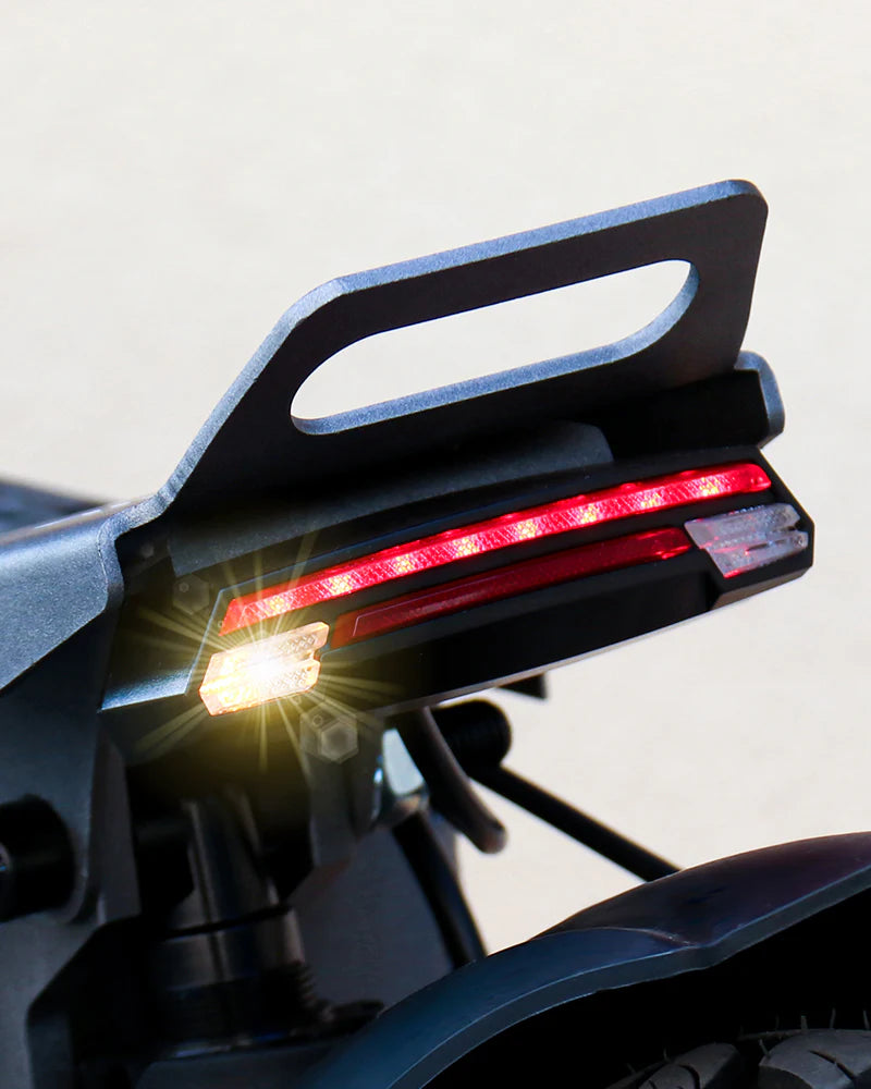 Sécurité tout-terrain : pneus tout-terrain de 10 ”, freins à disque avant/arrière (avec freinage électronique), éclairage LED complet et clignotants intégrés – voilà la base pour une conduite urbaine aussi visible que fiable.